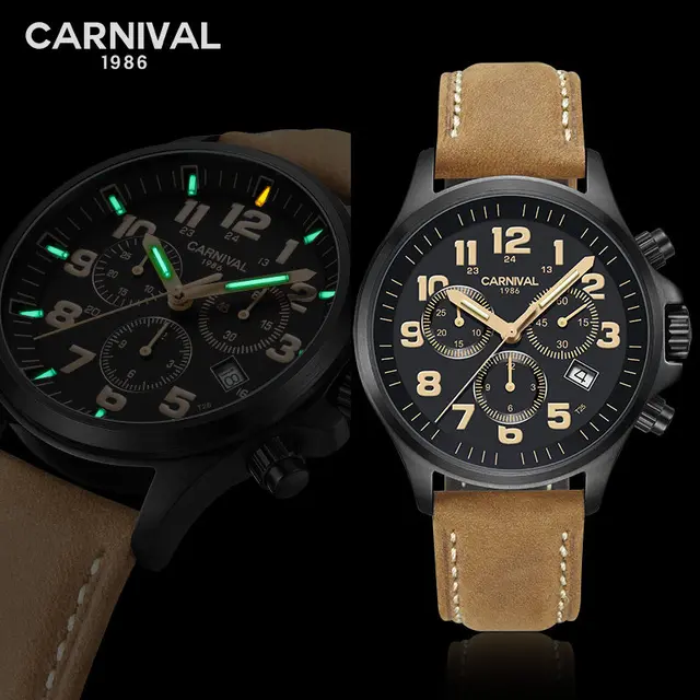 OVERVIEW Product Carnival Luxury Brand Watch Men Quartz Men's Watches Luminous Hands Watch Male Waterproof reloj hom